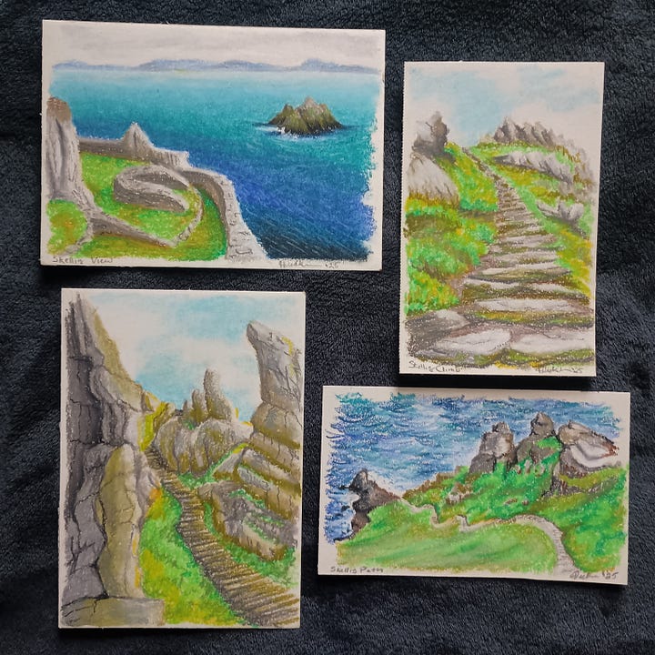 I've really been enjoying poring over James Gurney's book, The Artist's Guide to Sketching, that he wrote with the late Thomas Kincaid3. I don't know how many times I've explored this book since I bought it, but it's still giving me tons of ideas, in addition to helping me come to a deeper understanding of my own sketching practice. It's also inspiring me to want to develop my portrait sketching skills (currently rudimentary).