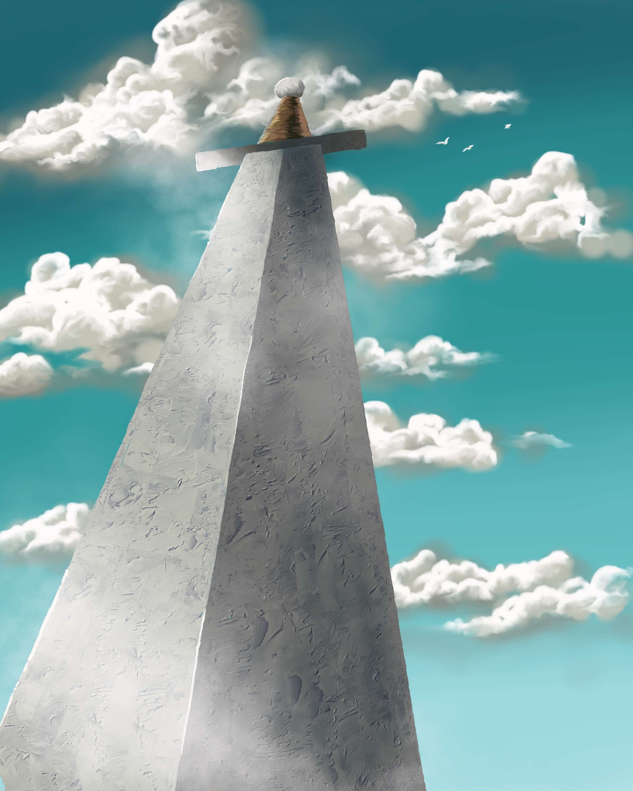 peering at colossal blades towering.