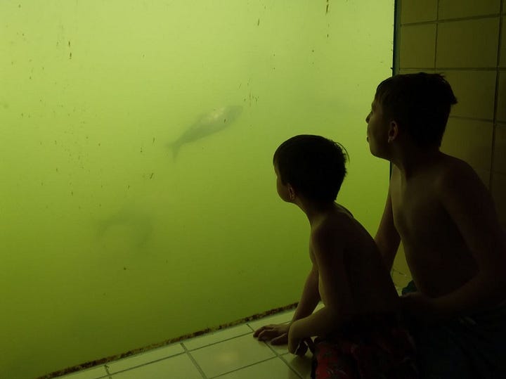 This is one of my favorite memories of this summer almost 3 years ago. I remembered visiting our local dam/hatchery as a kid in the Idaho panhandle, and had an opportunity to give my kids the same experience where we live now. And it was perfect! The fish were active, and the fish counter gentleman gave them a tour of his office.